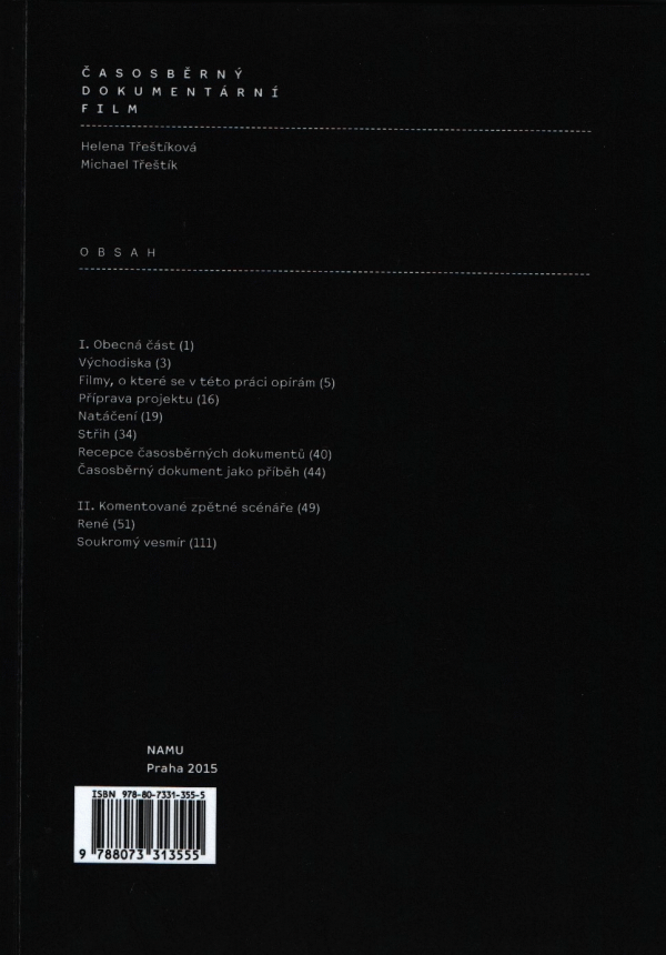Kniha představuje tvůrčí metodu respektované české dokumentaristky Heleny Třeštíkové – východiska, fáze přípravy a realizaci časosběrných dokumentů. Shrnuje její mnohaleté zkušenosti s natáčením dokumentárních filmů v dlouhém časovém úseku. Popisuje, jak se metoda časosběrného natáčení, které se věnuje nejdéle a nejsoustavněji nejen v České republice, ale i v kontextu světové kinematografie, vyvíjela a jaká úskalí museli tvůrci v průběhu let zdolávat. Součástí knihy jsou dva komentované scénáře realizovaných filmů René (2008) a Soukromý vesmír (2011). Zdroj: namu.cz