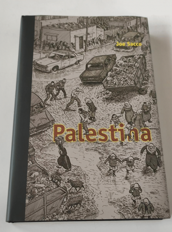 Za první intifády, v letech 1991 a 1992, strávil Joe Sacco dva měsíce s Palestinci na Západním břehu Jordánu a v pásmu Gazy. Na cestách si dělal poznámky a po návratu do Spojených států napsal a nakreslil komiks Palestina, v němž citlivě a přitom s humorem vylíčil, jaké je to žít, pracovat, cestovat, mít děti, přežívat a umírat jako Palestinec. Palestina je reportáž, ne politická polemika, Sacco v ní nenavrhuje žádná snadná řešení (ba vůbec žádná), jen dokumentuje bolest a utrpení lidí způsobem, jaký vám tradiční média jen těžko zprostředkují.
